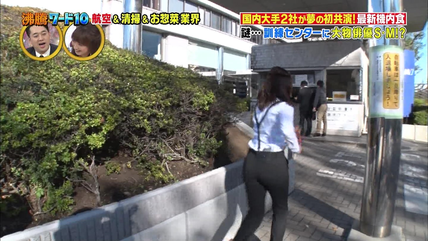 川田裕美アナ 吊りズボン尻!