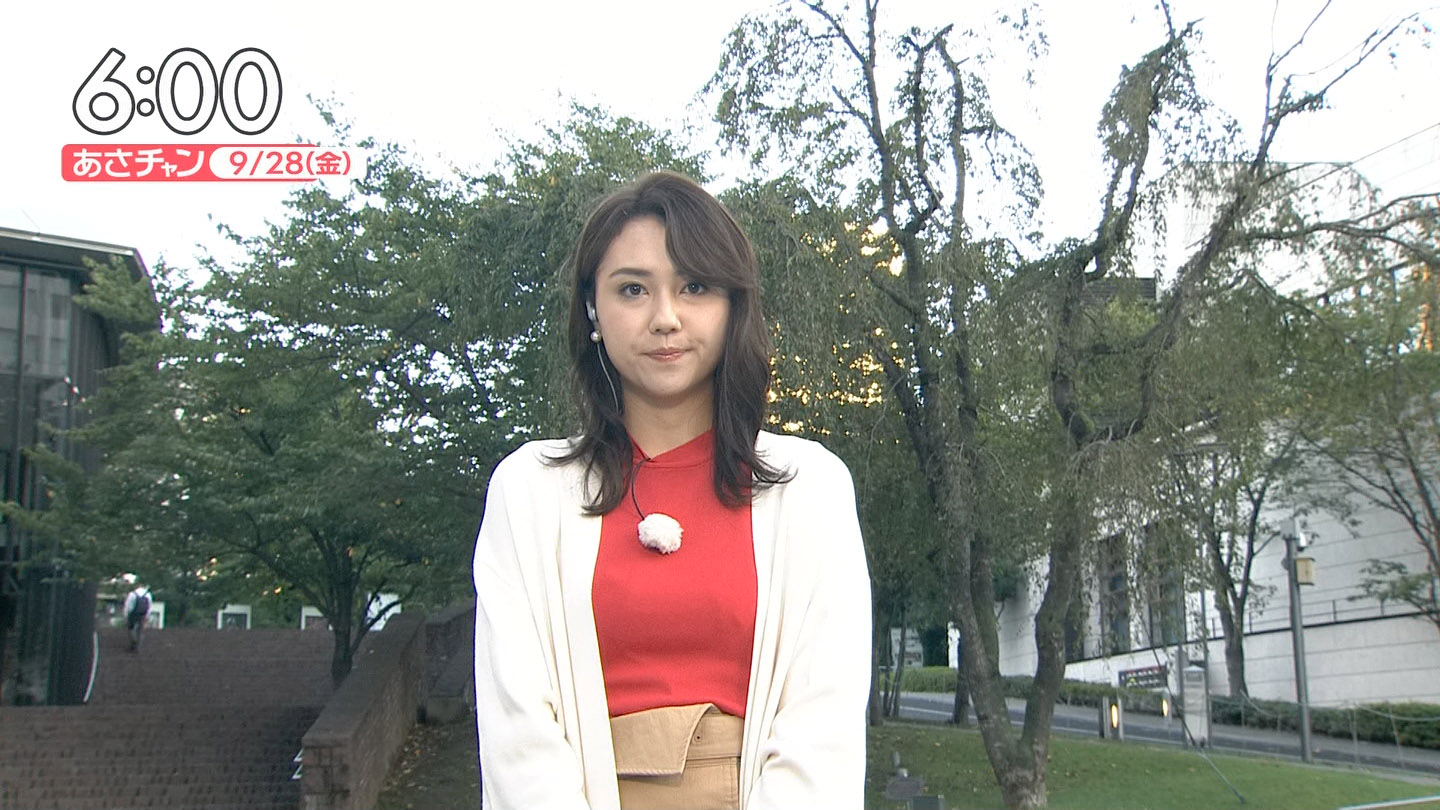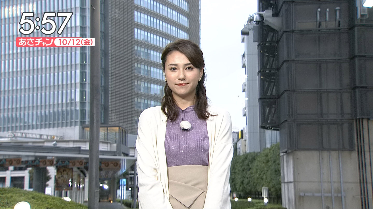 三谷紬アナ 寒空のニット巨乳!!