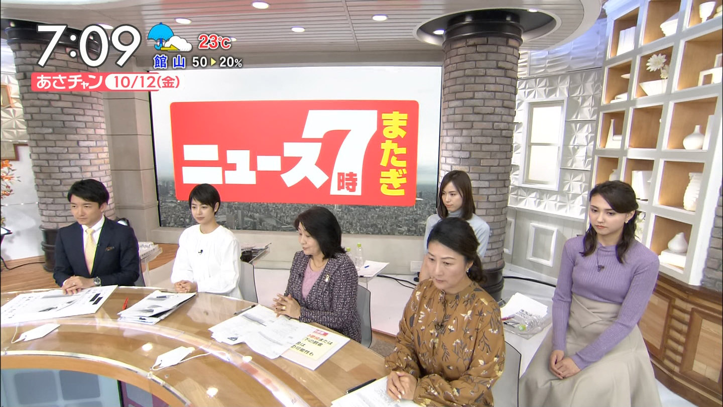 皆川玲奈アナ セクシーニットでおっぱい強調!