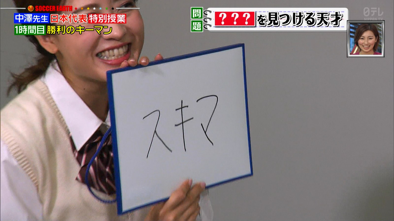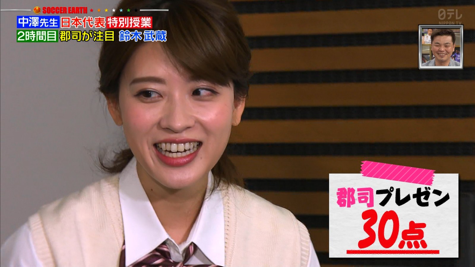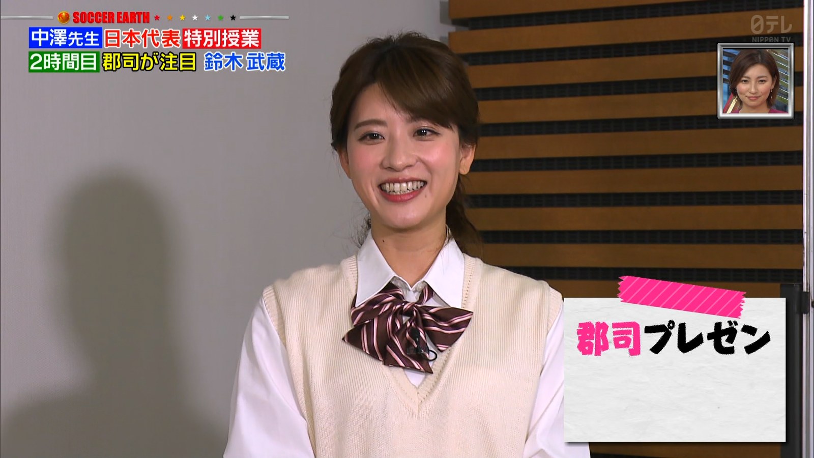 郡司恭子アナのミニスカ制服! ナマ脚の太もも!