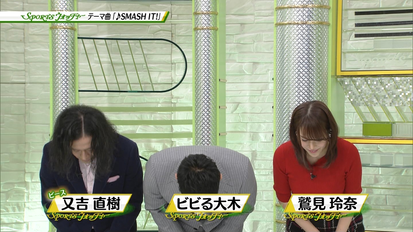 鷲見玲奈アナ ミニスカ & ニット巨乳!!